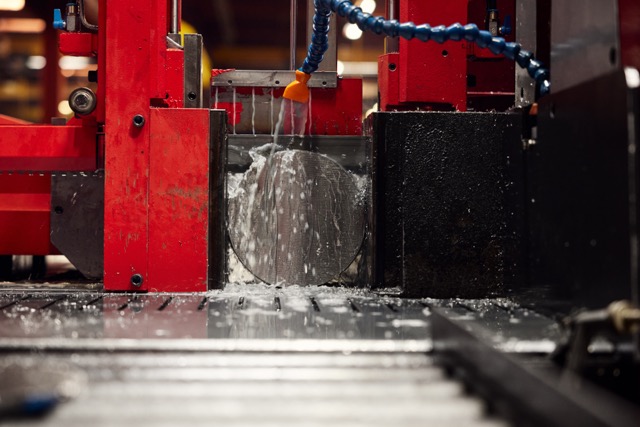 Fry Steel’s saw cutting process works like this: